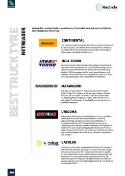 the industrial plant by INTI (National Institute of Industrial Technology) and is the only certified B company from Argentina in the field. The owner, Esteban Rappazzo has been at the forefront of retreading in Latin America for several years and has earned the right to stand alongside the much larger European retreaders on this shortlist.