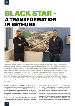 The French passenger and 4x4 tyre retreader Black Star has been very much in the news over the course of the last 18 months following the announcement that the company, together with its major shareholder, Mobivia, had struck a deal with Bridgestone to develop an integrated tyre recycling ecosystem on the site of the former Bridgestone tyre plant in Béthune, France. Following the more recent launch of Black Star’s new “made-in-Béthune” retread under the brand name Leonard,